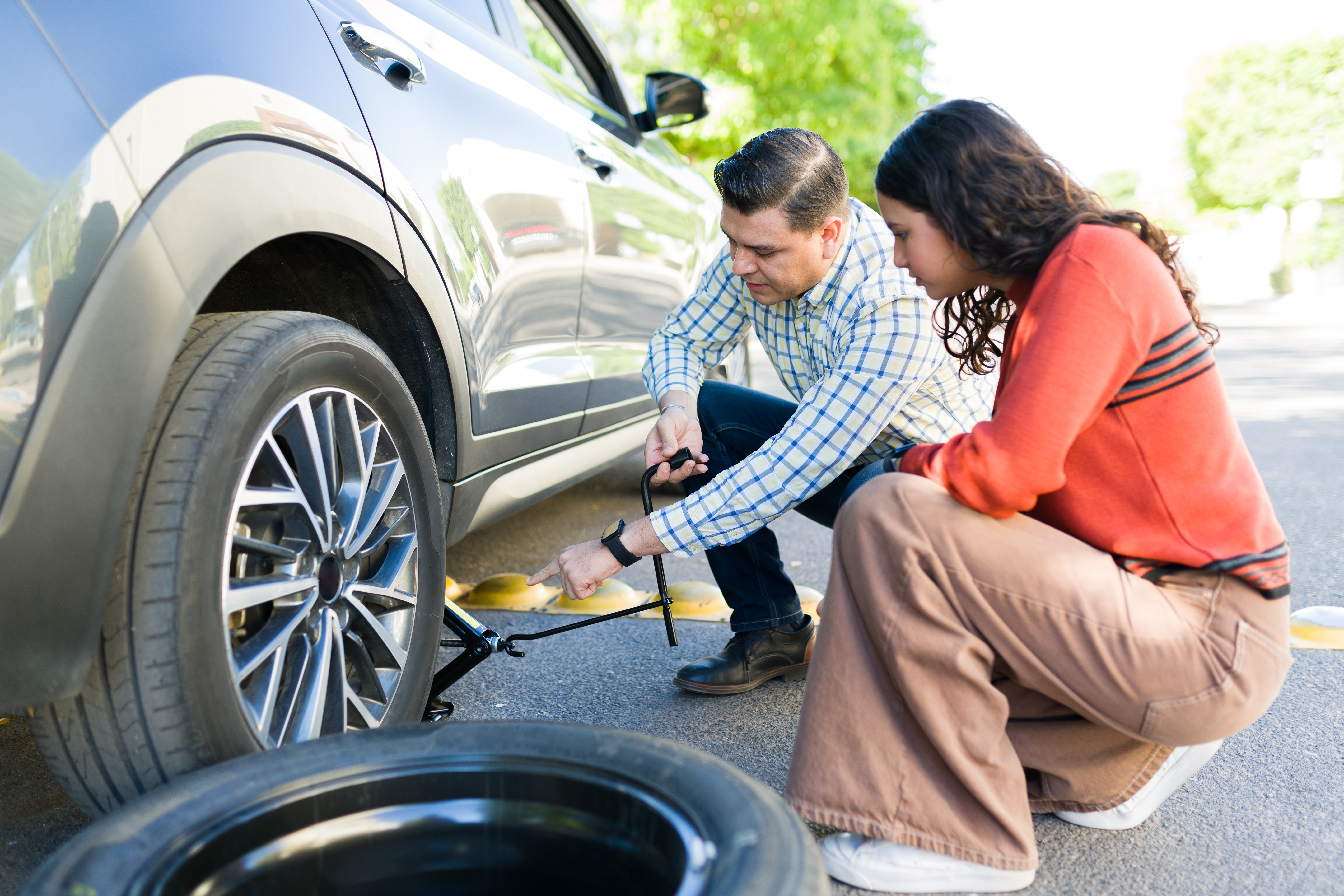 Help your teen learn basic car maintenance, like how to check tire pressure and oil levels. Show them how to replace windshield wiper fluid and have them practice changing a flat tire.